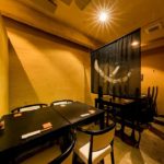 暖色系の温かみのあるライトが照らすテーブル席。4名様までご利用いただけるテーブル席を2卓ご用意。優しい雰囲気に包まれた居心地の良い空間は、ご接待やご商談、ご家族のお祝い事におすすめです。